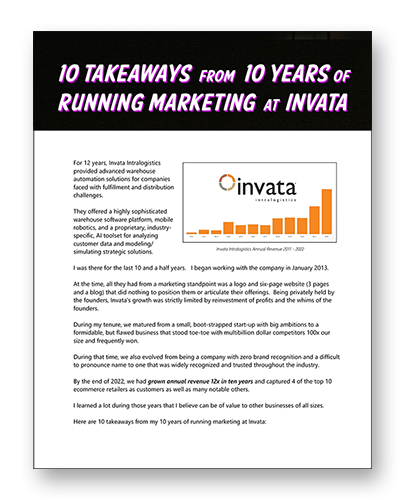 As a thank you for visiting our site, please download your free copy of Walter High’s 10 Takeaways from 10 Years of Running Marketing at Invata.