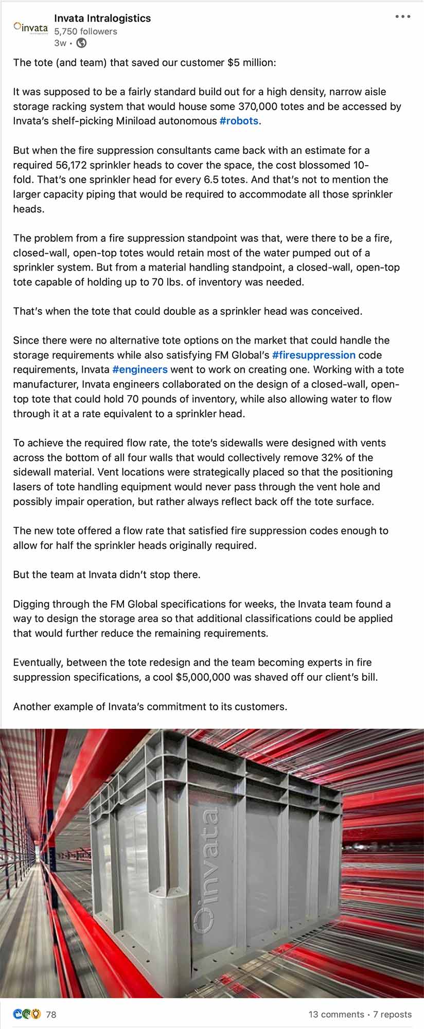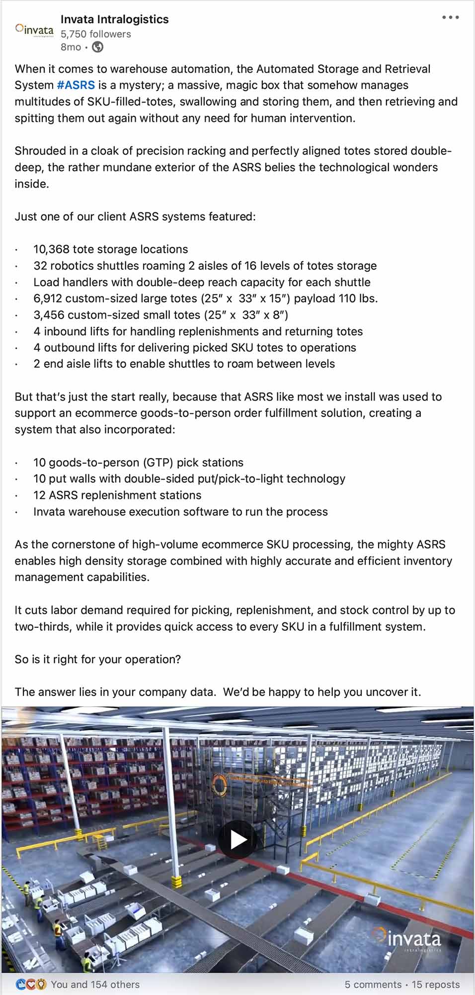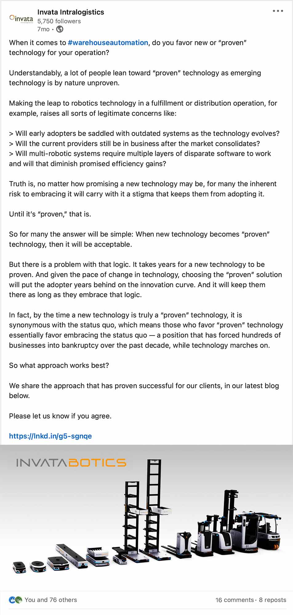 The LinkedIn posts in this gallery were created and written by Walter High for Invata Intralogistics. Click on any post to read or download.