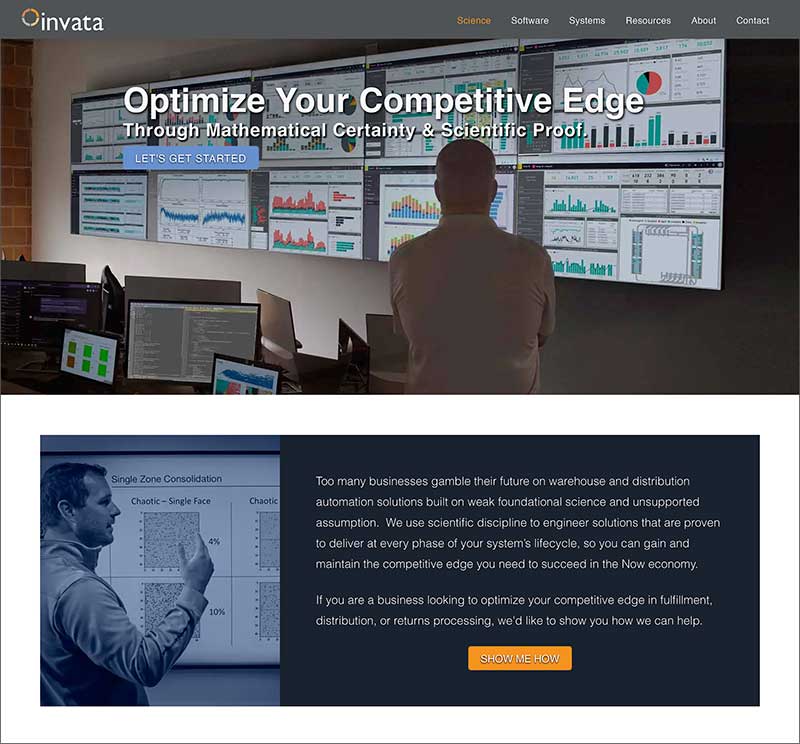 This was the second iteration of the Invata website. The first, created in 2013, was SEO driven and served us well for 5 – 6 years. The second iteration simplified our messaging, controlled our narrative, and focused on our customer. Pages were designed to be long and walk prospects through a subject without a multitude of links to take them off message. The navigation was simple and clean and the copy was prospect focused. Copy and direction by Walter High. Coding and UX by Russell Moore.